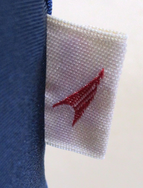 ポリエステル85%・ポリウレタン15%、フリル付き(アンダースパッツタイプ)、記名あり、フロントファスナー、紺×ホワイト
