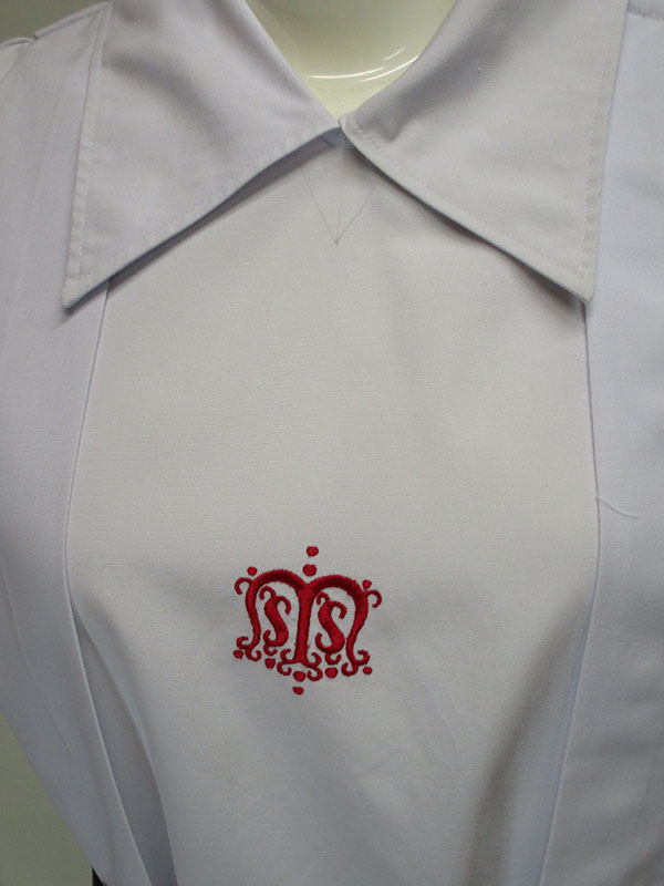 胸にマーク付、前側スナップ開き、黒色ベルト付