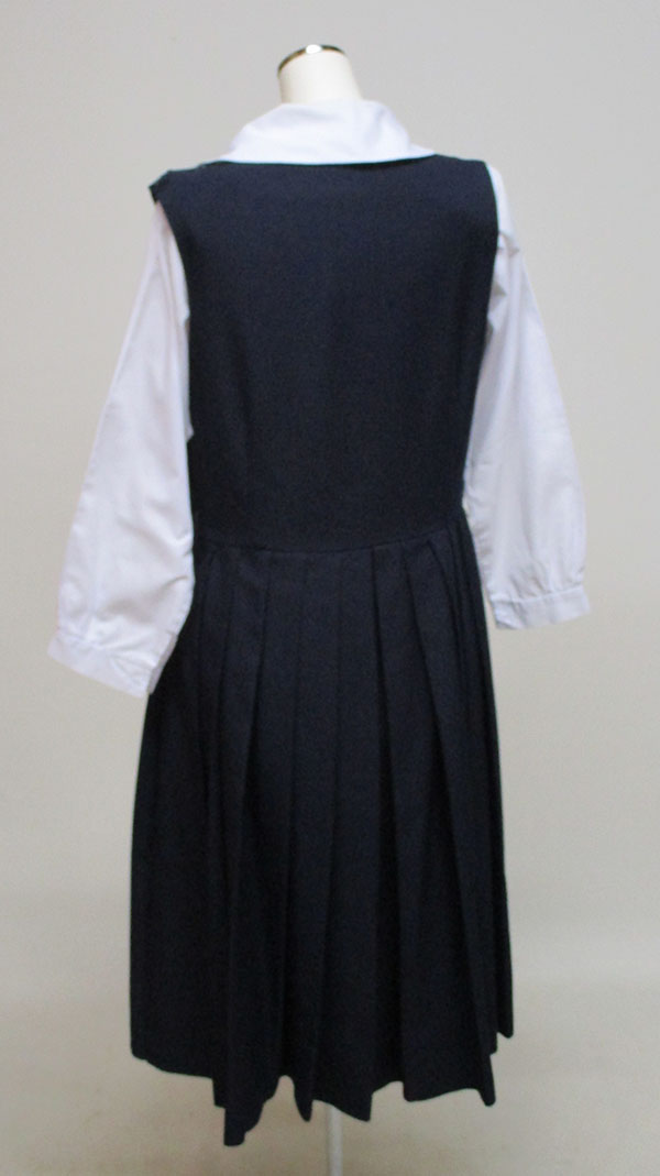 ブラウス:脇下ほつれあり、緑ヒモタイ付 ジャンスカ:紺、左スナップ・ファスナー