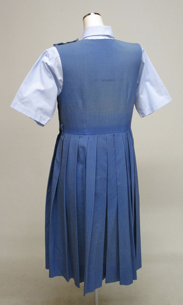 ブラウス:水色チェック、青色サテンリボン付 ジャンスカ:水色、左スナップ・ファスナー
