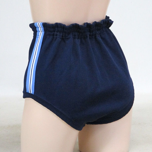 ポリエステル85%・綿15%、足口少々ゴムのび、紺×ブルー・ホワイトライン