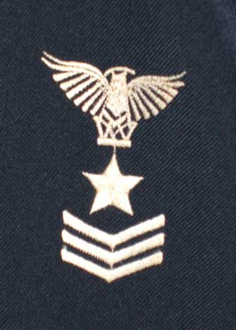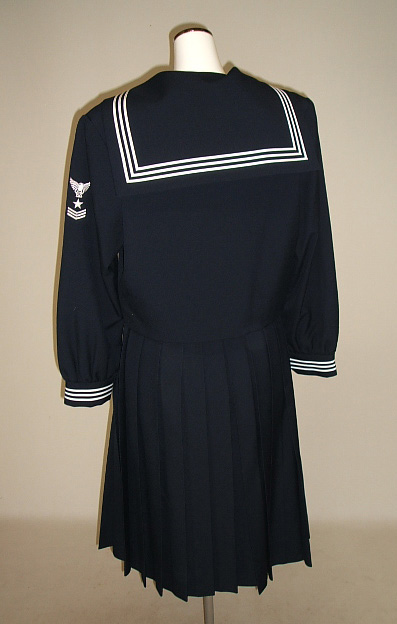 襟等に白3本ライン入り、紺色スカーフ付、左袖にマーク入り、かぶるタイプ