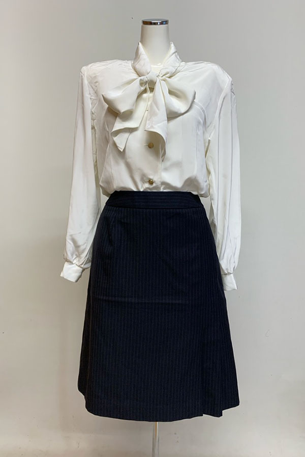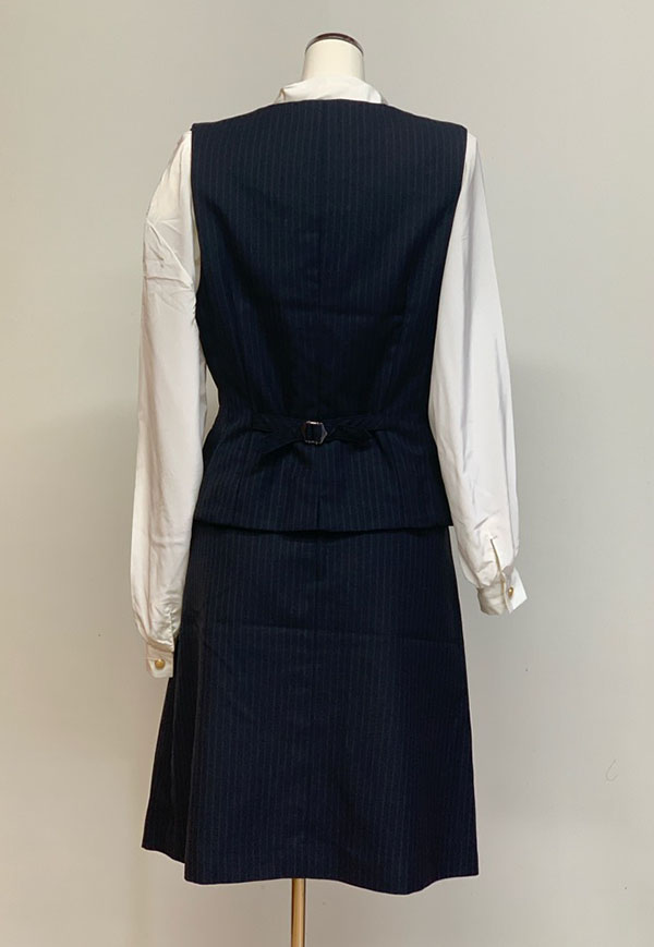 ベスト・スカート:ブラックストライプ柄、ブラウス:オフホワイト