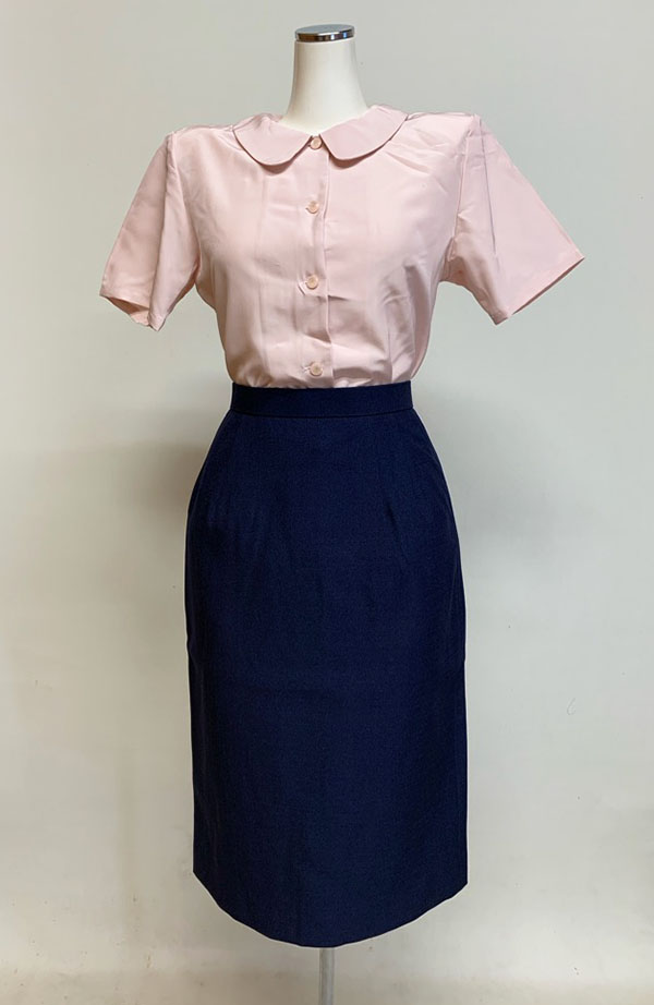 ベスト・スカート:ネイビー、ブラウス:パウダーピンク