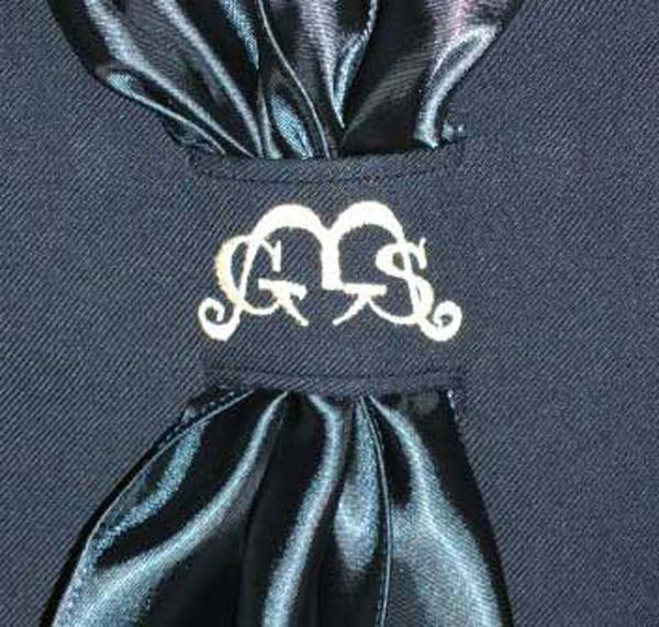 襟に白3本ライン、スカーフ通しに刺しゅう、紺色スカーフ付、かぶるタイプ