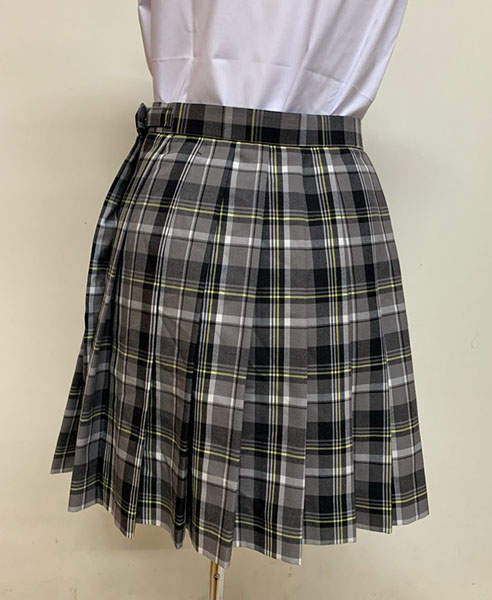 グレー×ブラック×ホワイト×イエローチェック柄、ヒダ20本、ポケットあり、CONOMI