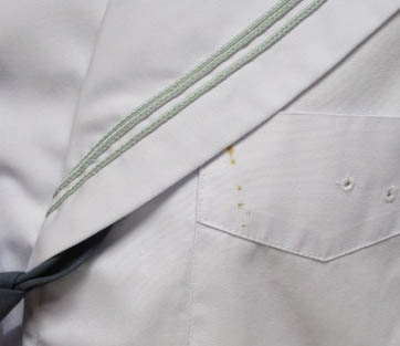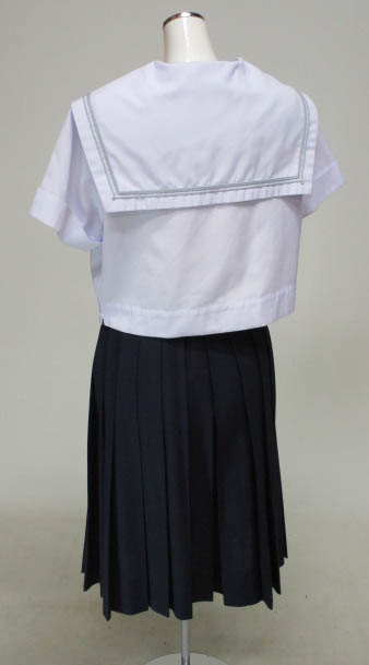 襟にグレー2本ライン、サイドファスナー、グレーネクタイ付、汚れあり