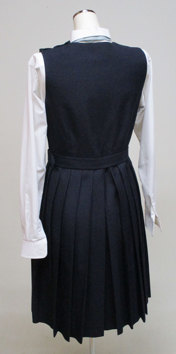 エンジサテンリボン付 ジャンスカ:紺、ベルト付、左スナップ・ファスナー