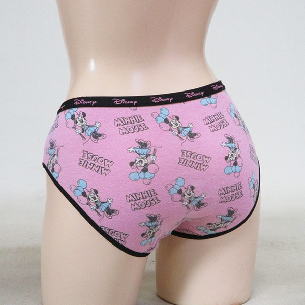 ポリエステル60%・綿35%・ポリウレタン5%、局部シミあり、毛玉あり、ピンク他「ミニーマウス」柄入り、女子中学生