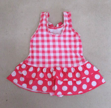 ポリエステル90%・ポリウレタン10%、記名あり、少々汚れあり、ピンク×ホワイト