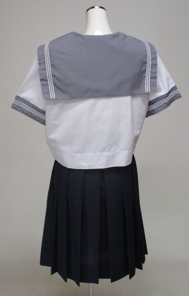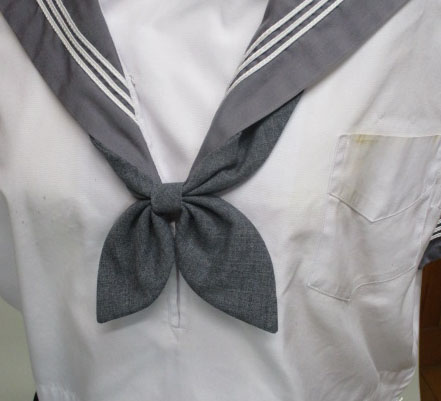 グレー襟等に白3本ライン、サイドファスナー、グレーリボン付